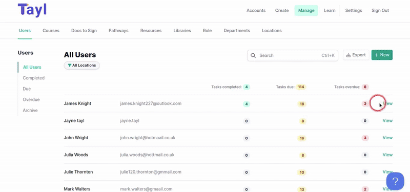 ⚠️You'll need to have added some courses to your library to assign them to users, departments, roles and locations. If you're a system administrator, for help please refer to our Adding Tayl Courses article.