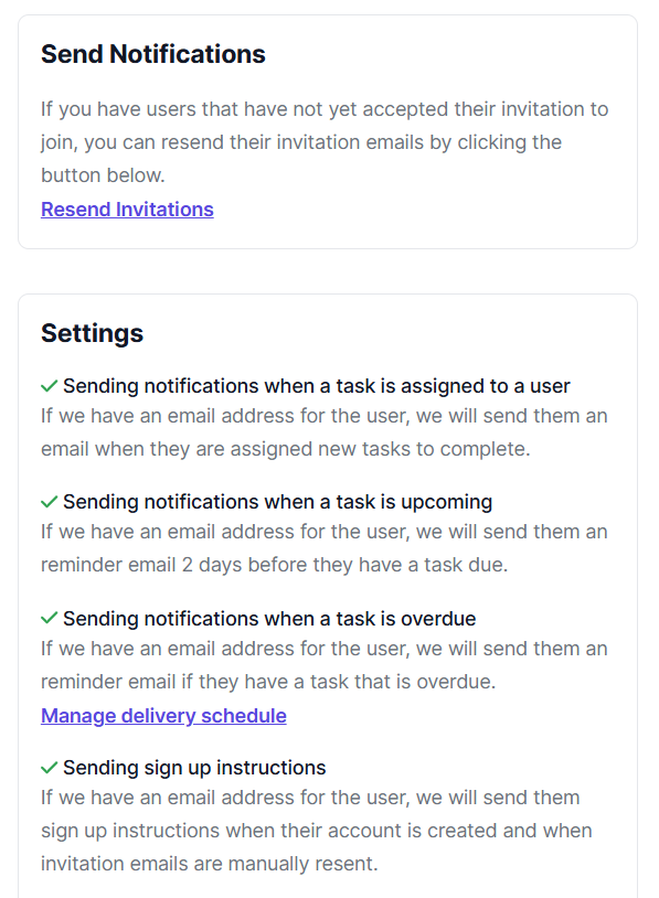 The platform has a standard set of automated notifications that get sent to users as part of the ongoing training management cycle. These notifications can be configurable depending on your organisations requirements. To amend notifications, click here to view the help doc