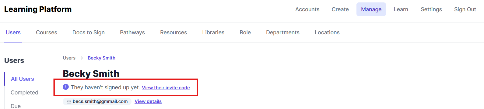 If you have a user who hasn't signed into the platform, as a Line Manager you are able to resend their invitation to them.