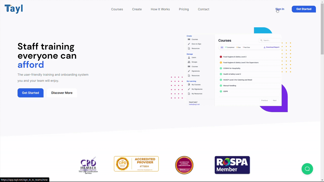 - Go to the Tayl website.